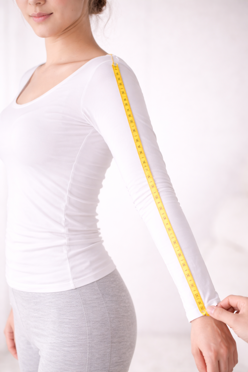 Tieni il braccio disteso lungo il tuo corpo e misura partendo dalla spalla fino al punto in cui vuoi che finiscano le maniche del tuo abito.