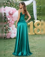 Abito 18 anni lungo elegante in raso con spacco