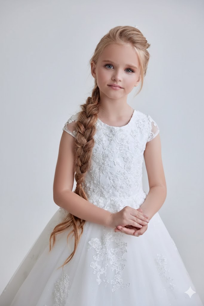 L’abito "Sinfonia Bianca" incarna l’essenza della tradizione sartoriale di Sposatelier. Pensato per le occasioni più solenni, questo modello combina un corpetto finemente lavorato con una gonna maestosa, creando un look intramontabile che evoca la grazia di una piccola principessa.