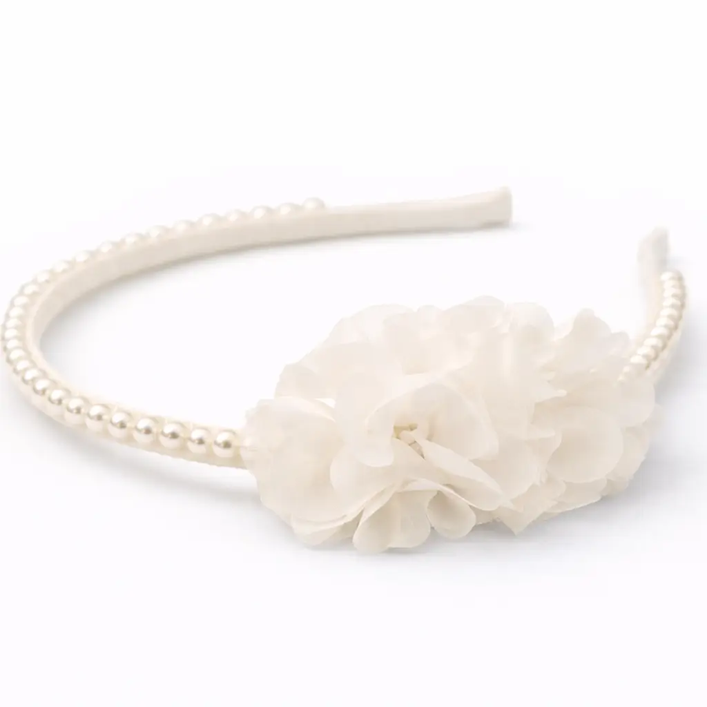 Cerchietto Perle Bambina Cerimonia – Sottile con Fiore Laterale